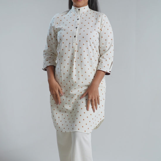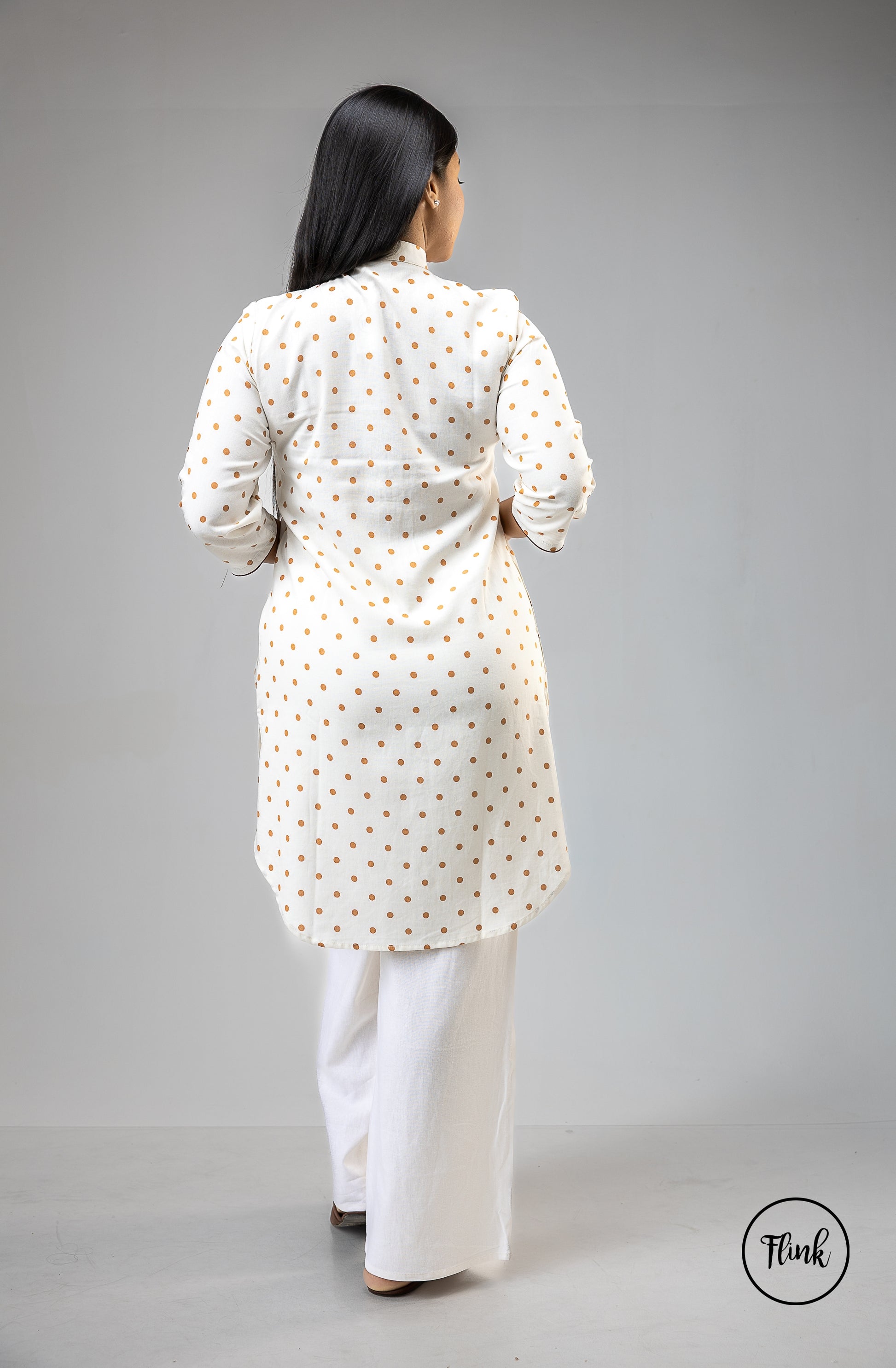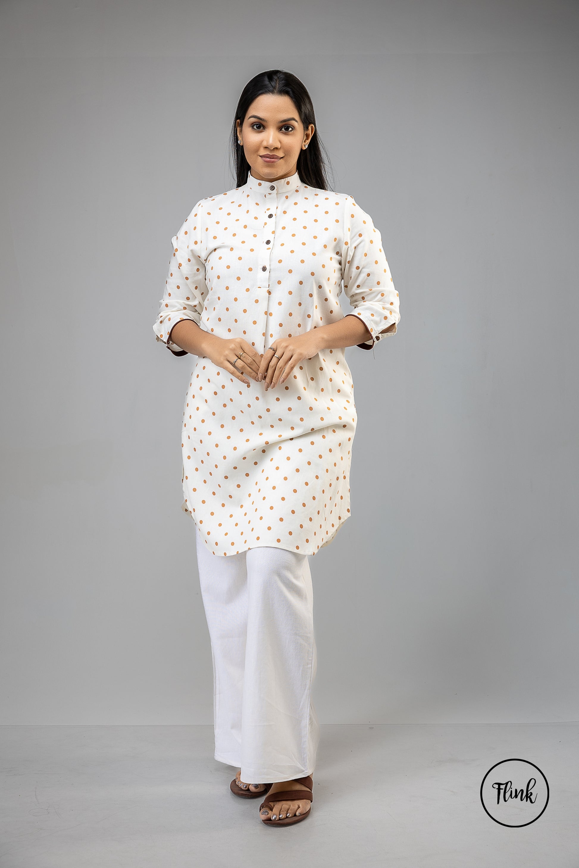 This Citrus Dot Long Top blends cotton and linen for breathable, comfortable wear. Its casual design with subtle dot patterns offers effortless style for everyday occasions. Perfect for a relaxed yet polished look, it supports your comfort throughout the day.